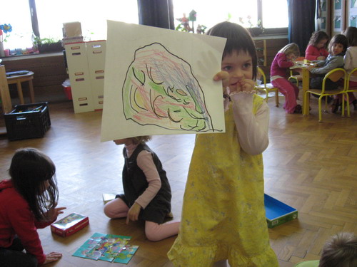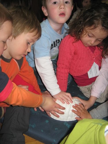 Razpravljamo, kakšne barve so možgani, kako trdi ali mehki so in kako so sestavljeni. Ob tem nam je seveda v pomoč model, ki smo ga vlili v lanskoletnih možganskih delavnicah Možgani kot na dlani. Otroci so nad stikom z valovito površino navdušeni. Vsi si želijo pobožati možgane in skoraj bi lahko rekla, da dotikanje možganov otroke pomirja.
