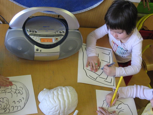 Vsi smo mnenja, da slednja glasba prija našim možganom. Odločimo se, da se bomo danes igrali ob glasbi. Eni otroci sestavljajo sestavljanke, drugi se igrajo družabno igrico, spet tretji ob poslušanju glasbe likovno ustvarjajo. Ne morem reči, da so likovne ali umske sposobnosti otrok ob poslušanju glasbe večje ali manjše, ker to ni v našem primeru merljivo, vendar pa so otroci neprimerno bolj umirjeni, spravljivi v svojih odnosih, tihi in vztrajni.